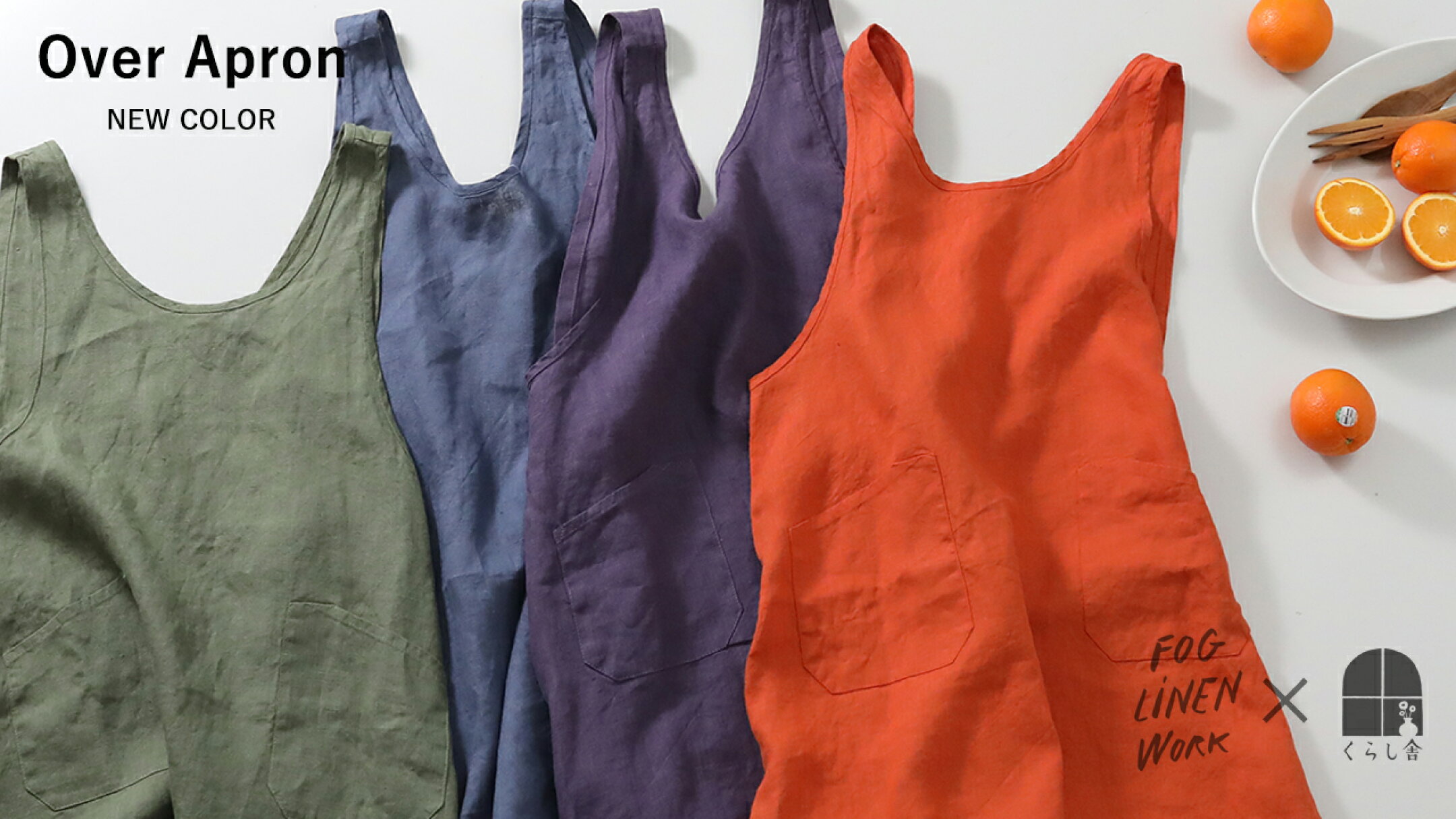 大人気の fog linen workリネンオーバーエプロン。