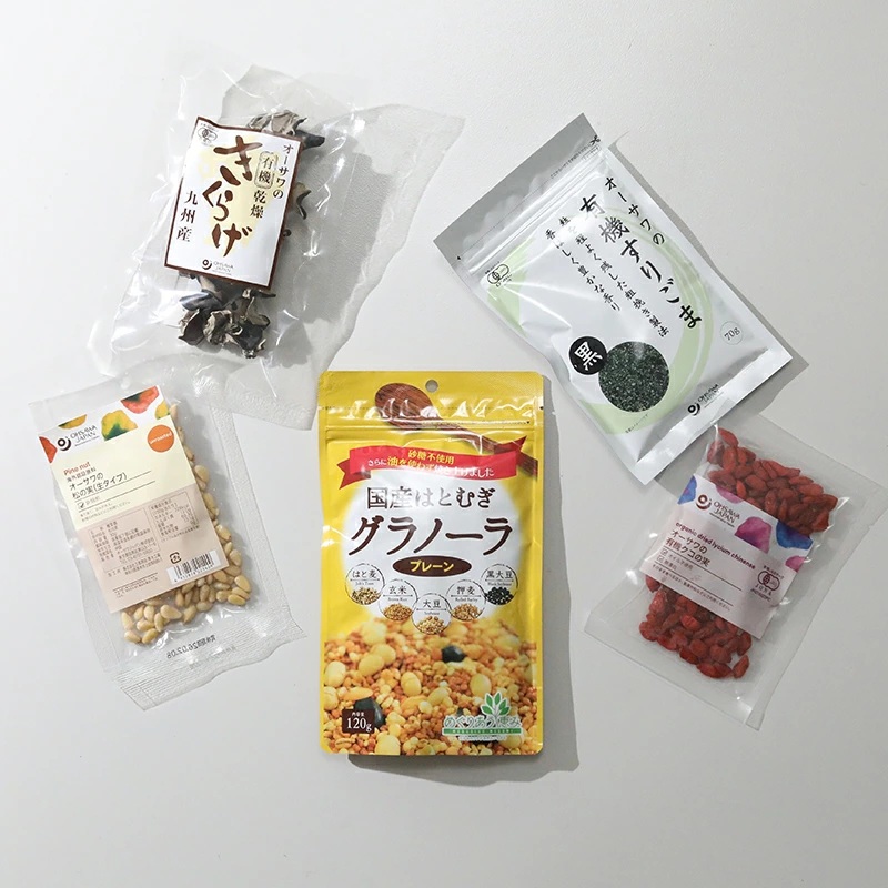 ストックしておくと便利な薬膳食材。はとむぎグラノーラはそのままサクサク食べられます。